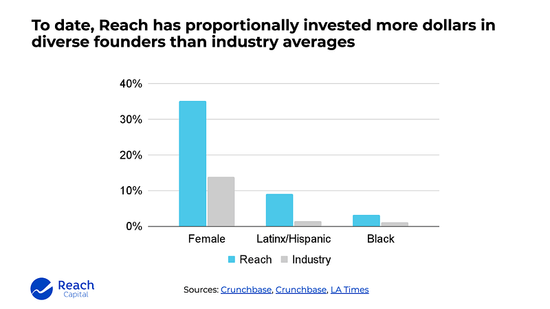 Our journey continues. While Reach is among the top seed investors in companies with female founders and underrepresented minority founders, there is still a ways to go before our overall portfolio diversity is representative of the U.S. population.